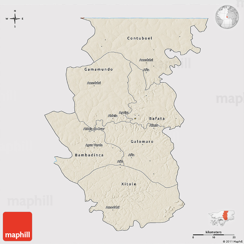 Maphill is a collection of map images. This view of Bafata at an angle of 60° is one of these images. Click on the Detailed button under the map for a more comprehensive map.