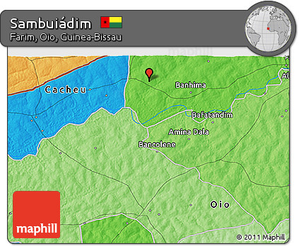 The 3D political map represents one of many map types and styles available. Look at Sambuiádim, Farim, Oio, Guinea-Bissau from different perspectives.
