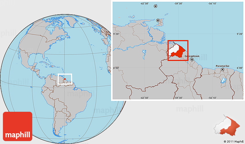 Maphill is a collection of map images. This image combines a gray map with the globe centered on I-2 Waini. Use the buttons under the image to switch to different map types.