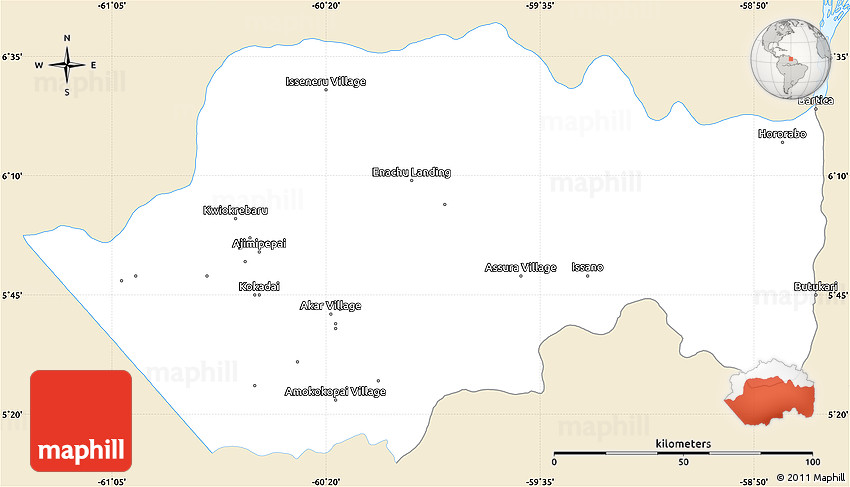 The simple classic style outline map represents one of several map types and styles available. Look at VII-2 Mazaruni/L.B.E.Rive, Cuyuni/mazaruni, Guyana from different perspectives.