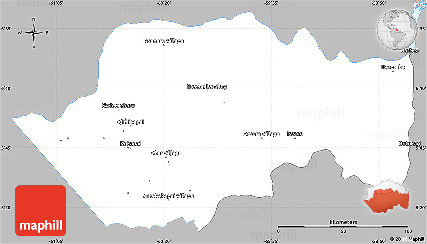 The simple gray outline map represents one of several map types and styles available. Look at VII-2 Mazaruni/L.B.E.Rive, Cuyuni/mazaruni, Guyana from different perspectives.