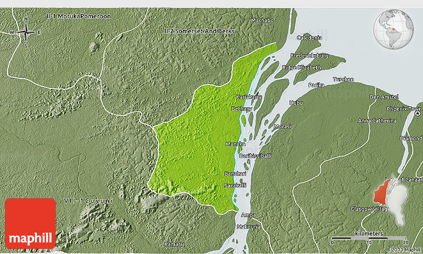 The value of Maphill lies in the possibility to look at the same area from several perspectives. Maphill presents the map of III-1 Essequibo Islands in a wide variety of map types and styles.