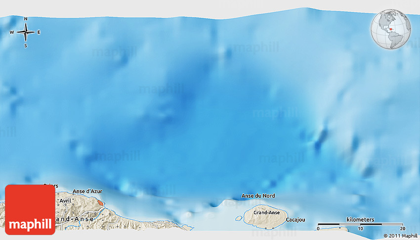 The 3D shaded relief map represents one of many map types and styles available. Look at Petite Plaine, Grand-Anse, Haiti from different perspectives.
