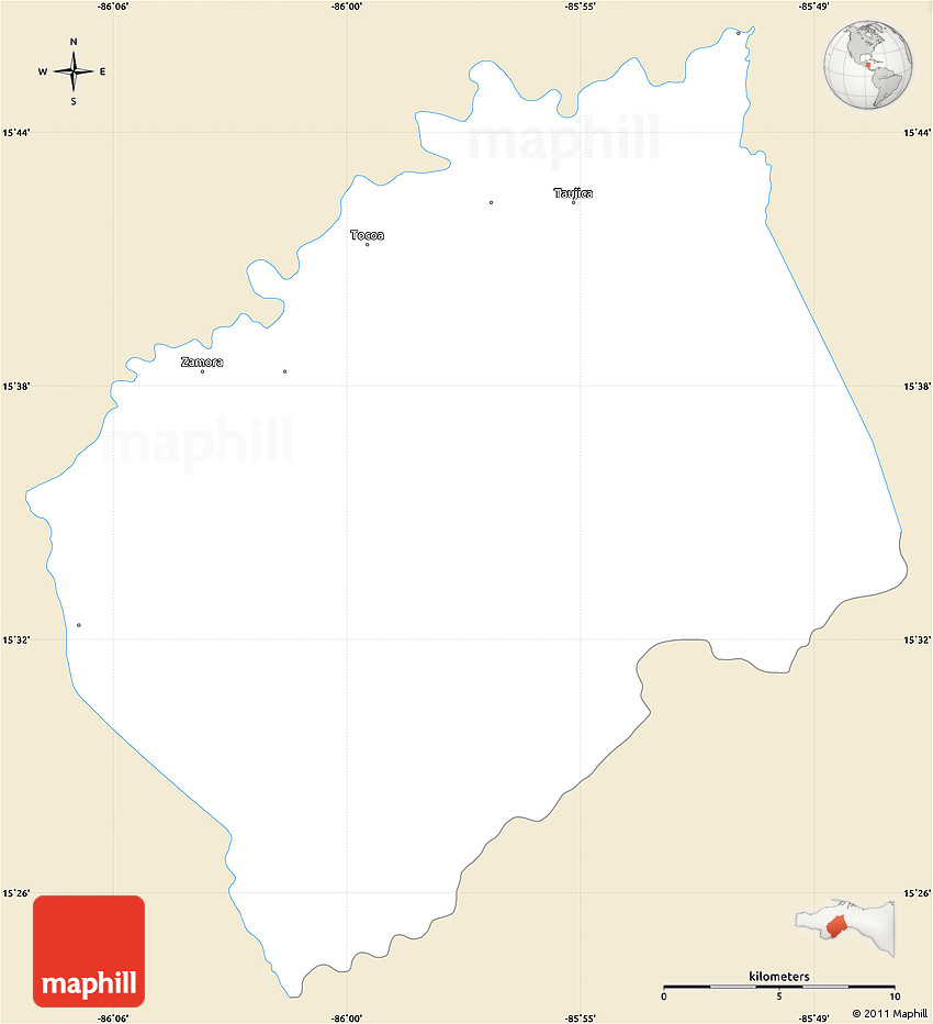 Maphill is a collection of map graphics. This simple outline map of Tocoa is one of these images. Use the buttons under the image to switch to more comprehensive and detailed map types.