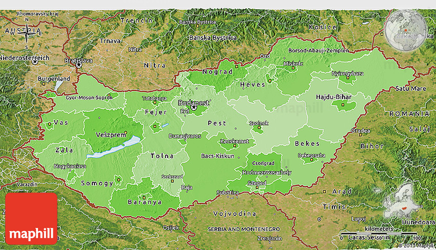 Use the buttons for Facebook, Twitter or Google+ to share a link to this Hungary map. Maphill is the largest map gallery on the web. But the number of maps is certainly not the only reason to visit Maphill.
