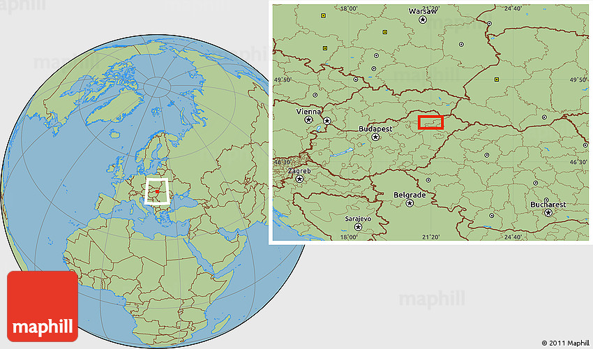 Maphill is a collection of map images. This image combines a savanna style map with the globe centered on Kótaj. Use the buttons under the image to switch to different map types.