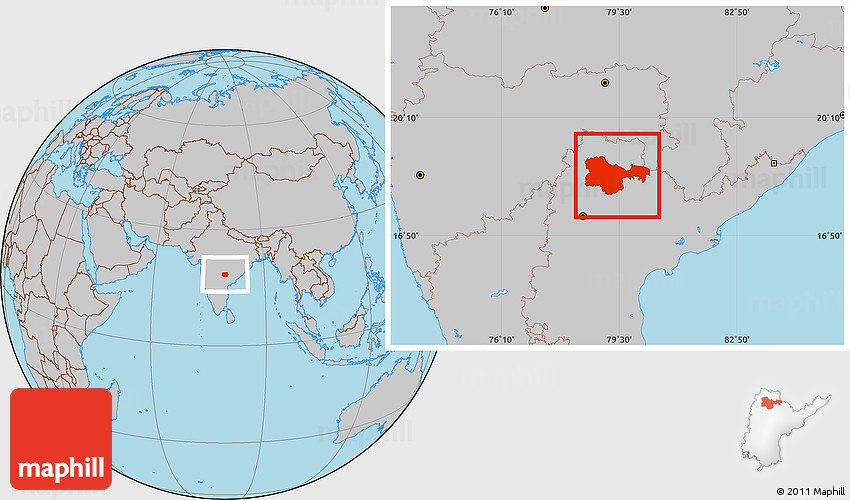 Maphill is a collection of map images. This image combines a gray map with the globe centered on Karimnagar. Use the buttons under the image to switch to different map types.