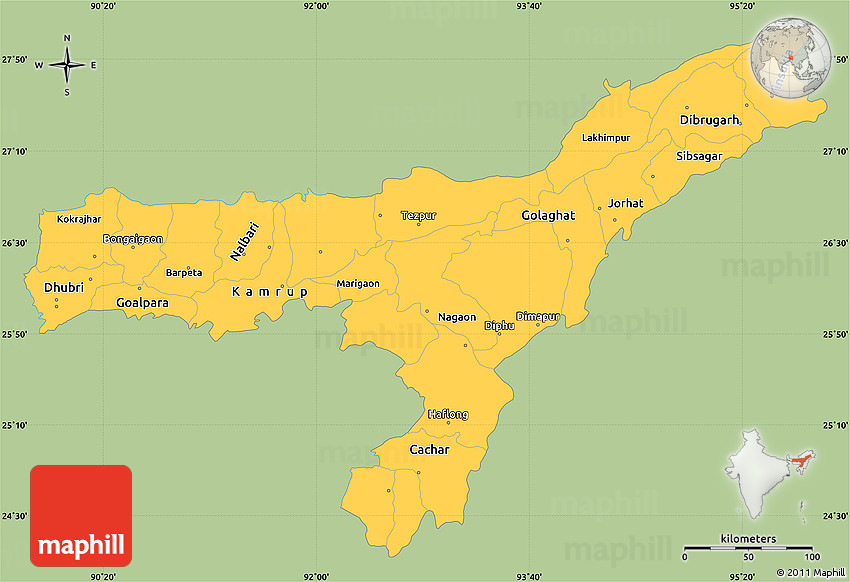 Use the buttons for Facebook, Twitter or Google+ to share this Assam, India map. Maphill is the largest map gallery on the web. But the number of maps is certainly not the only reason to visit Maphill.
