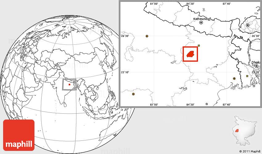 Maphill is a collection of map images. This image combines a blank map with the globe centered on Aurangabad. Use the buttons under the image to switch to different map types.