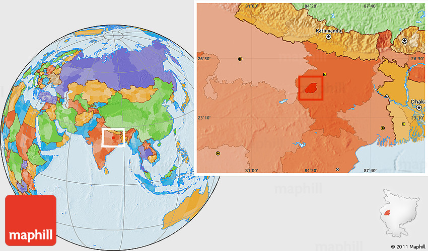 The political location map represents one of several map types and styles available. Look at Aurangabad, Bihar, India from different perspectives.