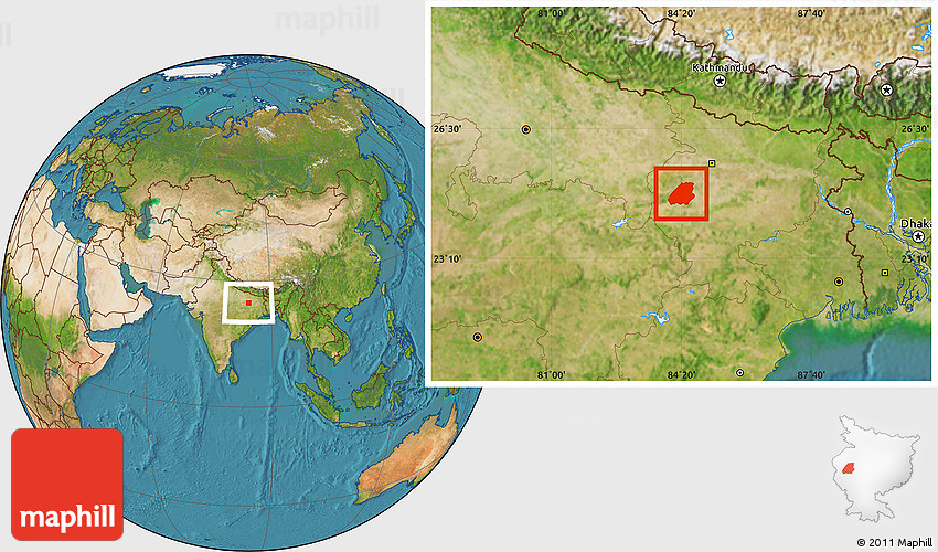 Maphill is a collection of map images. This image combines a satellite map with the globe centered on Aurangabad. Use the buttons under the image to switch to different map types.