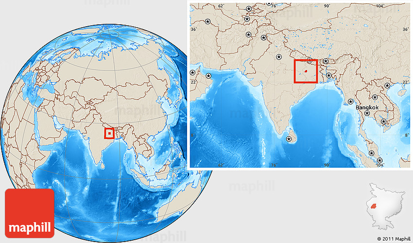 Maphill is a collection of map images. This image combines a shaded relief map with the globe centered on Aurangabad. Use the buttons under the image to switch to different map types.