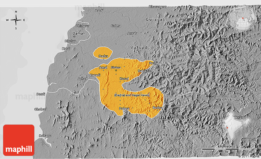 Use the buttons for Facebook, Twitter or Google+ to share this Dadra and Nagar Haveli, India map. Maphill is the largest map gallery on the web. But the number of maps is certainly not the only reason to visit Maphill.