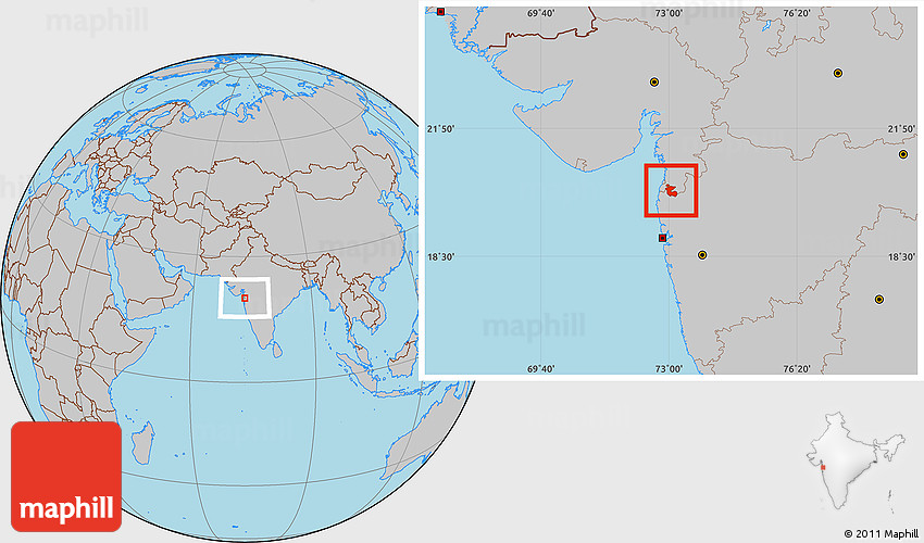 Maphill is a collection of map images. This image combines a gray map with the globe centered on Dadra and Nagar Haveli. Use the buttons under the image to switch to different map types.