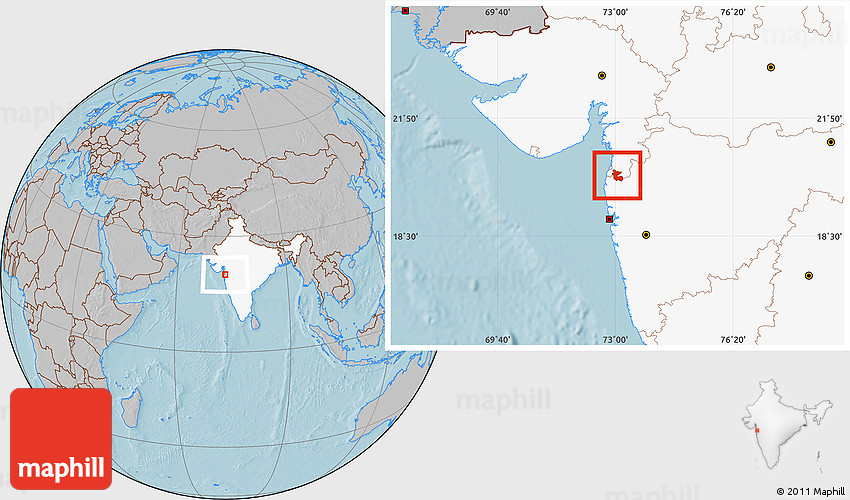 Maphill is a collection of map images. This image combines a gray map with the globe centered on Dadra and Nagar Haveli. Use the buttons under the image to switch to different map types.