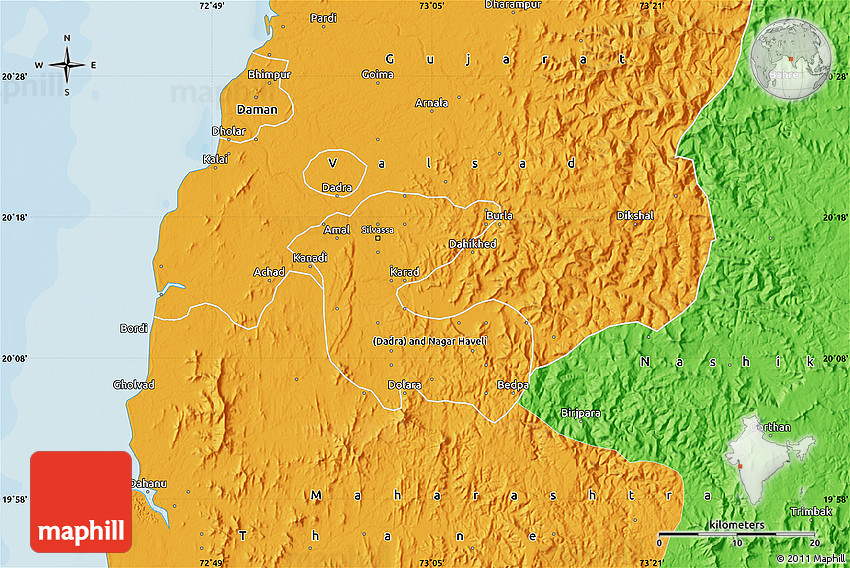 If any of Maphill's maps inspire you to come to Dadra and Nagar Haveli, we would like to offer you access to wide selection of hotels at low prices and with great customer service.