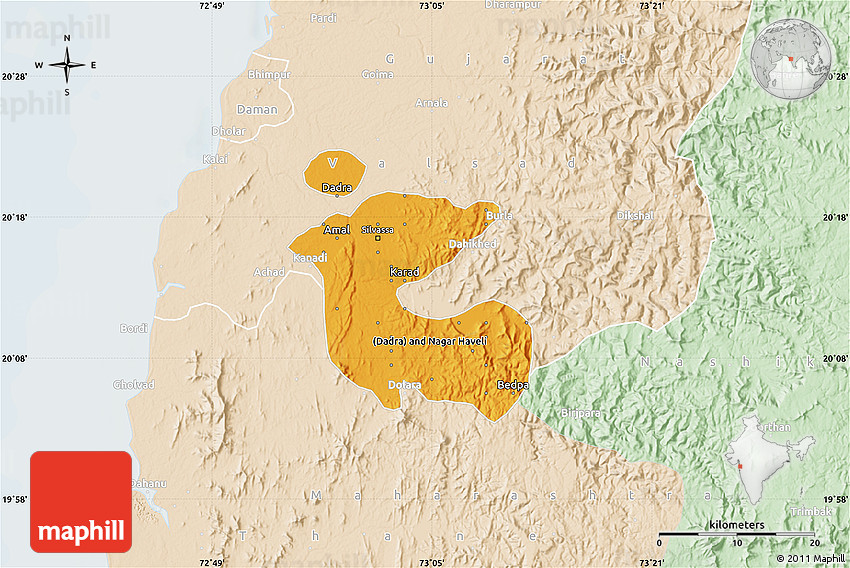 If any of Maphill's maps inspire you to come to Dadra and Nagar Haveli, we would like to offer you access to wide selection of hotels at low prices and with great customer service.