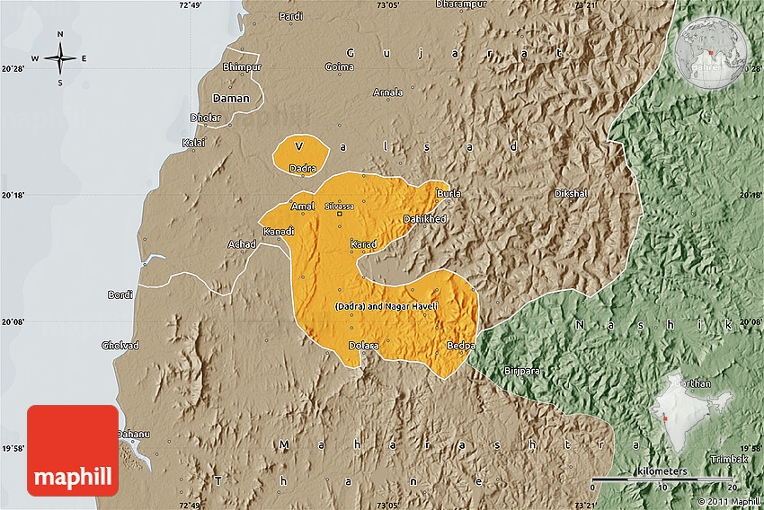 Maphill is a collection of map images. This political map of Dadra and Nagar Haveli is one of them. Click on the Detailed button under the image to switch to a more detailed map.