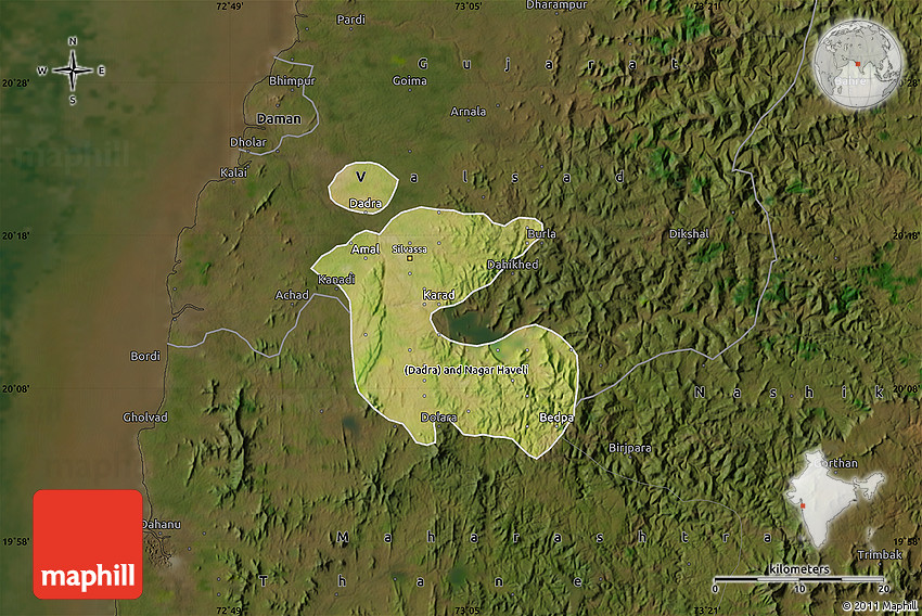 Maphill is a collection of map images. This satellite map of Dadra and Nagar Haveli is one of them. Click on the Detailed button under the image to switch to a more detailed map.