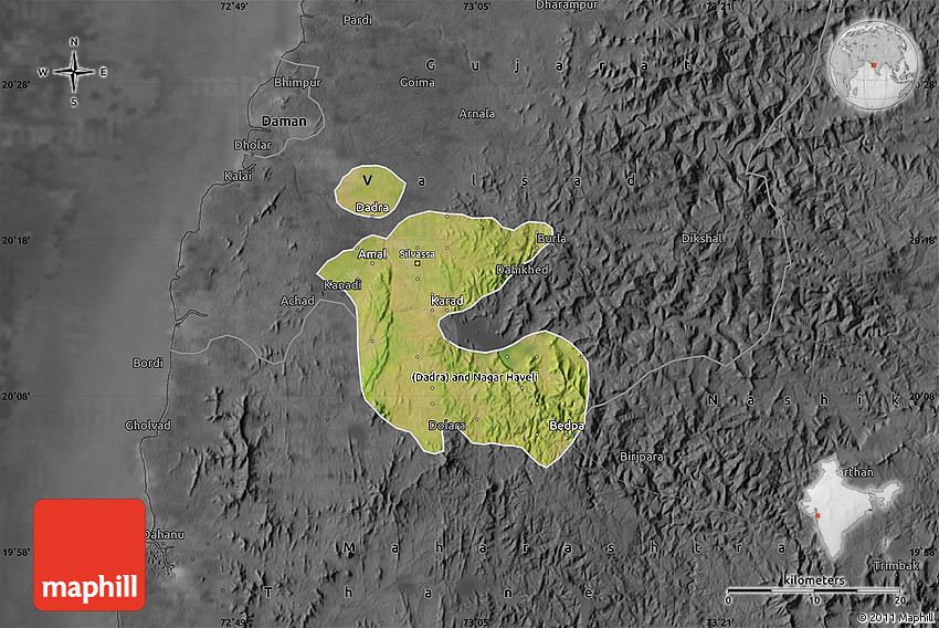 Maphill is a collection of map images. This satellite map of Dadra and Nagar Haveli is one of them. Click on the Detailed button under the image to switch to a more detailed map.