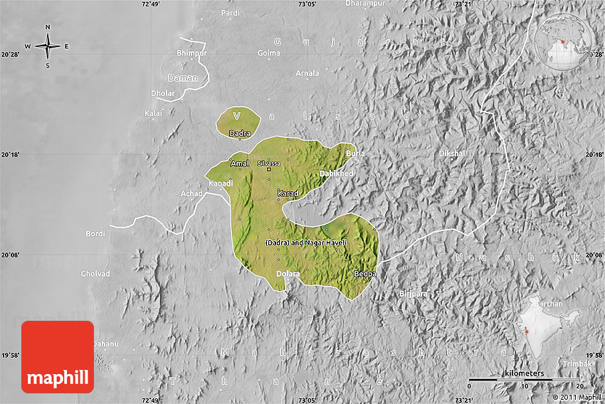 Maphill is a collection of map images. This satellite map of Dadra and Nagar Haveli is one of them. Click on the Detailed button under the image to switch to a more detailed map.