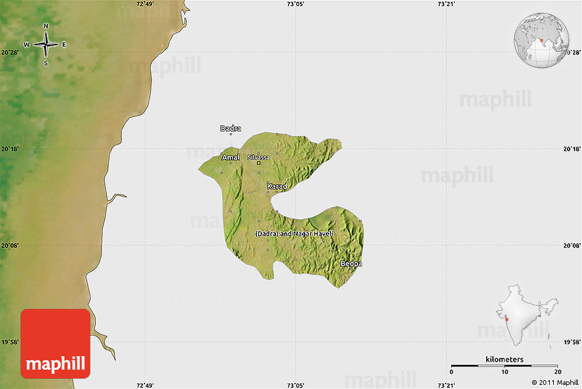 Maphill is a collection of map images. This satellite map of Dadra and Nagar Haveli is one of them. Click on the Detailed button under the image to switch to a more detailed map.