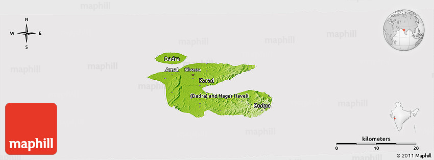 The panoramic physical map represents one of many map types and styles available. Look at Dadra and Nagar Haveli from different perspectives.