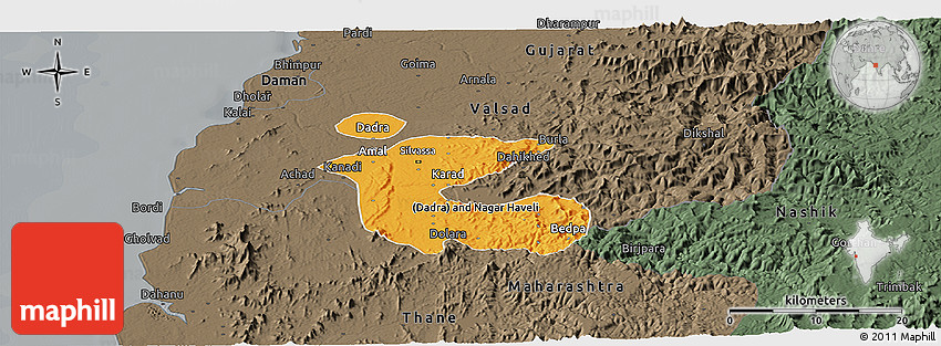 The panoramic political map represents one of many map types and styles available. Look at Dadra and Nagar Haveli from different perspectives.