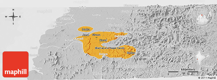 The panoramic political map represents one of many map types and styles available. Look at Dadra and Nagar Haveli from different perspectives.