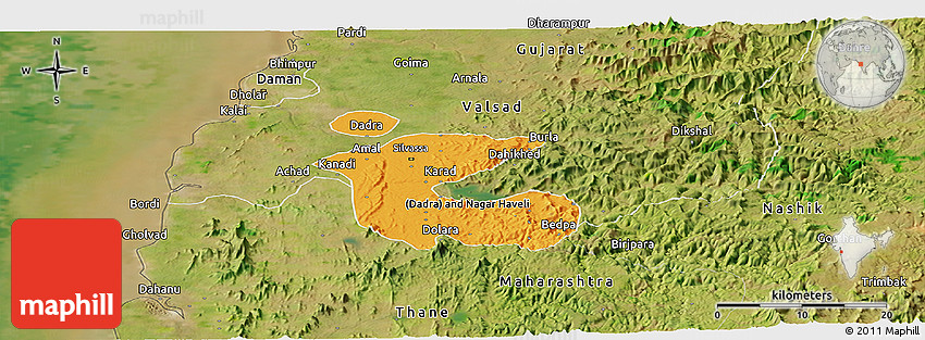 The panoramic political map represents one of many map types and styles available. Look at Dadra and Nagar Haveli from different perspectives.