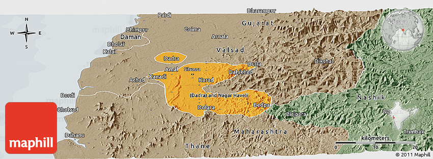 The panoramic political map represents one of many map types and styles available. Look at Dadra and Nagar Haveli from different perspectives.