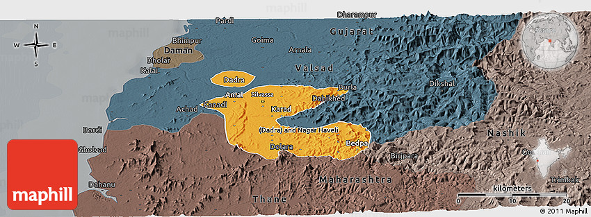 The panoramic political shades map represents one of many map types and styles available. Look at Dadra and Nagar Haveli from different perspectives.