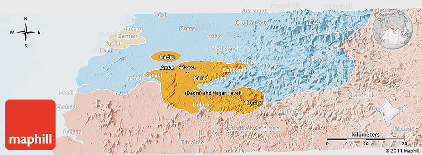 The panoramic political shades map represents one of many map types and styles available. Look at Dadra and Nagar Haveli from different perspectives.