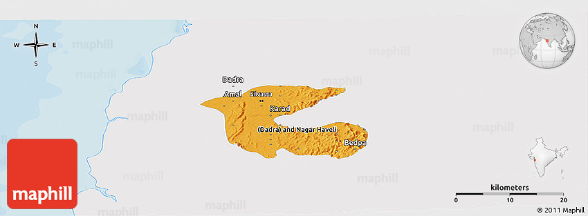 The panoramic political shades map represents one of many map types and styles available. Look at Dadra and Nagar Haveli from different perspectives.