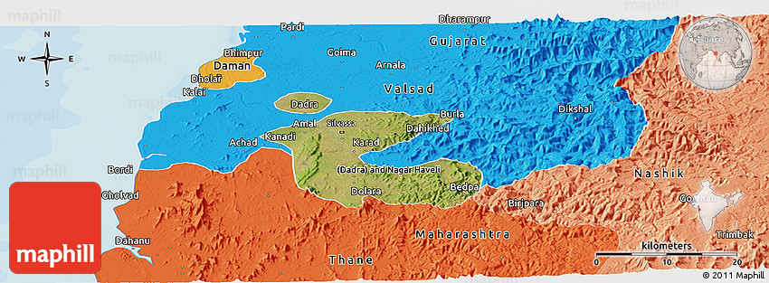 If any of Maphill's maps inspire you to come to Dadra and Nagar Haveli, we would like to offer you access to wide selection of hotels at low prices and with great customer service.