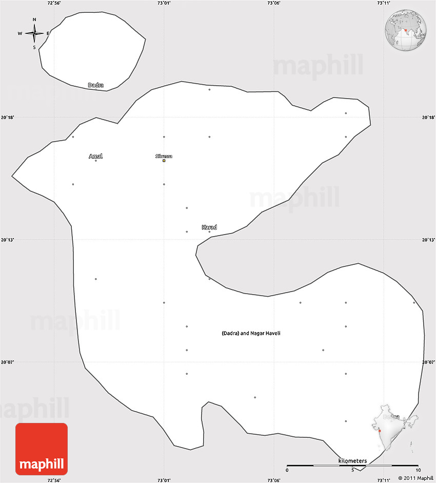 Maphill is a collection of map graphics. This simple outline map of Dadra and Nagar Haveli is one of these images. Use the buttons under the image to switch to more comprehensive and detailed map types.