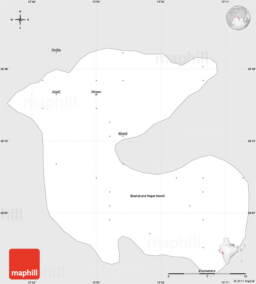The simple silver style map represents one of many map types and styles available. Look at Dadra and Nagar Haveli from different perspectives.