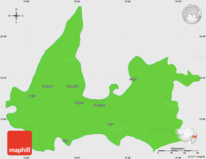 Embed the above political simple map of Vadodara into your website. Enrich your blog with quality map graphics. Make the web a more beautiful place.