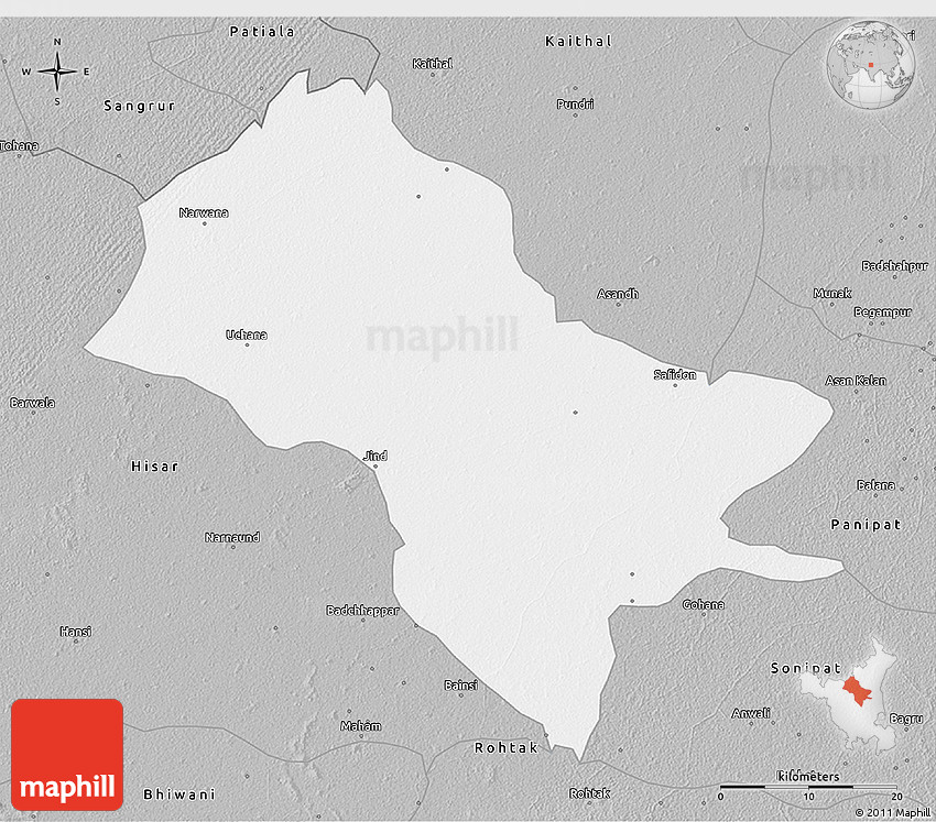 The grey colored map. Jind is highlighted in white. This color scheme is similar to silver styled maps, but compared to the latter, a darker shade of gray is used.