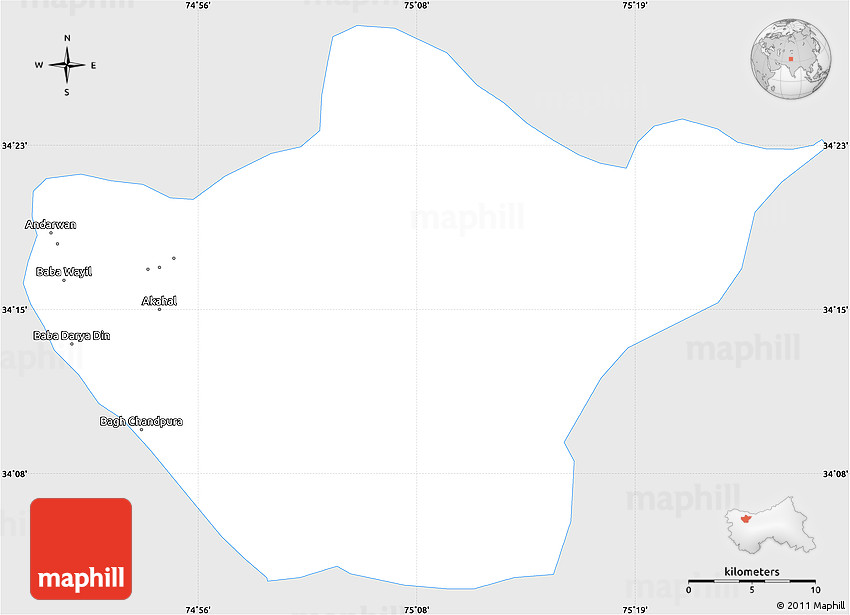 The simple silver style outline map represents one of several map types and styles available. Look at Srinagar, Jammu and Kashmir, India from different perspectives.