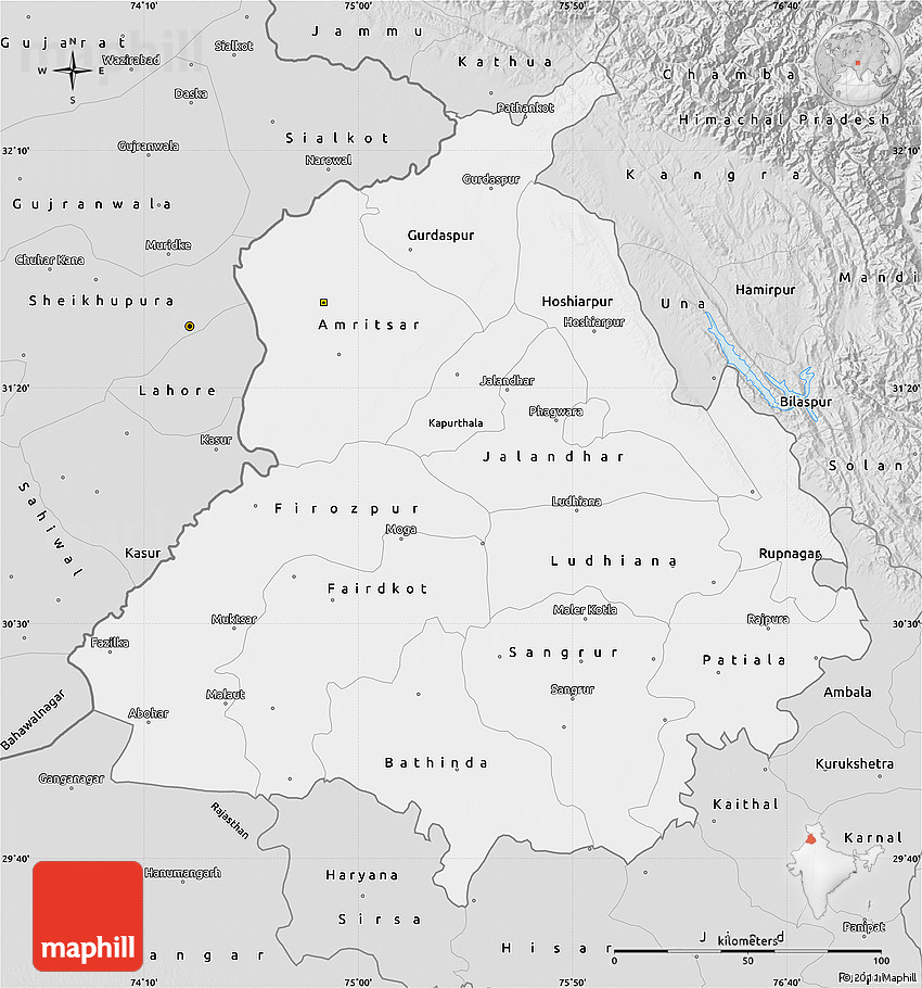 Embed the above silver style map of Punjab into your website. Enrich your blog with quality map graphics. Make the web a more beautiful place.