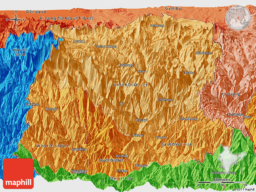 The panoramic political shades map represents one of many map types and styles available. Look at Sikkim from different perspectives.