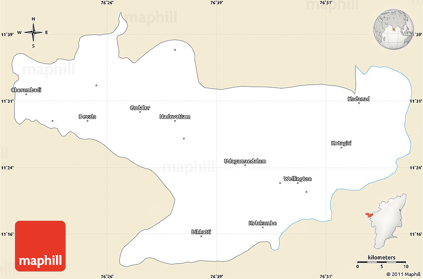 Embed the above classic style simple map of Nilgiris into your website. Enrich your blog with quality map graphics. Make the web a more beautiful place.
