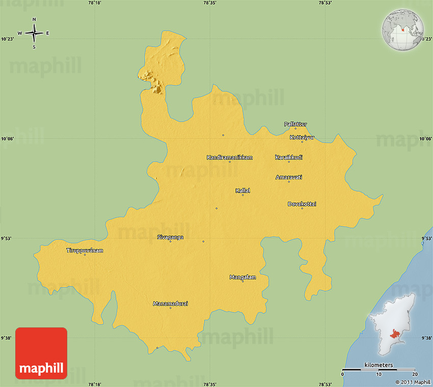 Maphill is a collection of map images. This savanna style map of Pasumpon Muthuramalingam is one of them. Click on the Detailed button under the image to switch to a more detailed map.
