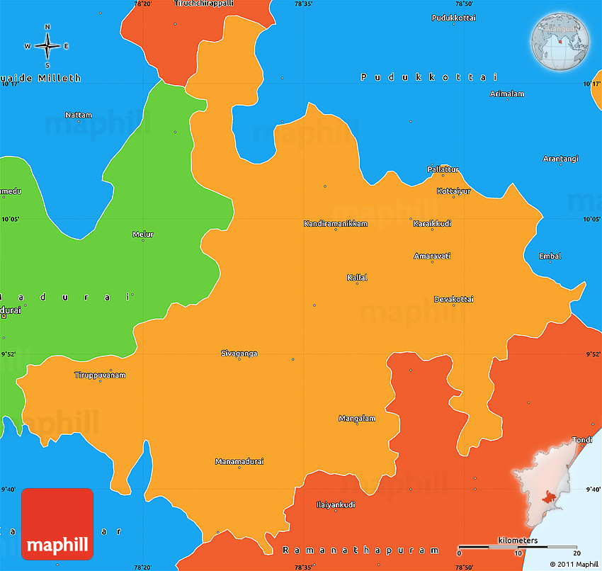 Each map type offers different information and each map style is designed for a different purpose. Read about the styles and map projection used in the above map (Political Simple Map of Pasumpon Muthuramalingam).