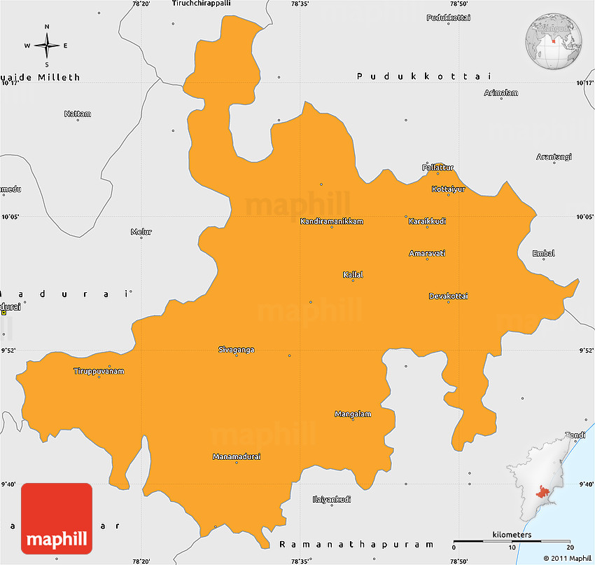 Maphill is a collection of map graphics. This simple outline map of Pasumpon Muthuramalingam is one of these images. Use the buttons under the image to switch to more comprehensive and detailed map types.