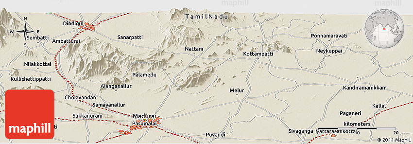 Sure, this shaded relief panoramic map is nice. But there is good chance you will like other map styles even more. Select another style in the above table. See Tovarankurichchi and Tamil Nadu from a different view.