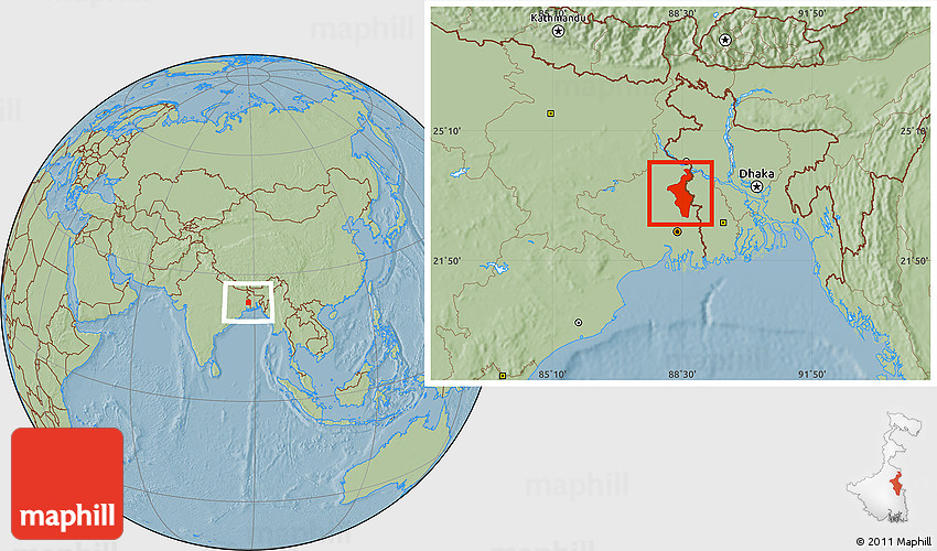 The savanna style location map represents one of several map types and styles available. Look at Nadia (Krishnanagar), West Bengal, India from different perspectives.