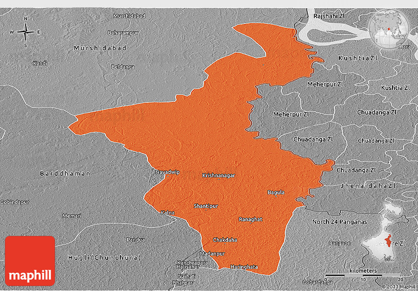 The panoramic political map represents one of several map types and styles available. Look at Nadia (Krishnanagar), West Bengal, India from different perspectives.