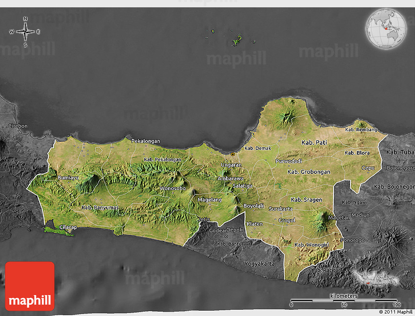 Satellite map shows the Earth's surface as it really looks like. The above map is based on satellite images taken on July 2004. This satellite map of Central Java is meant for illustration purposes only. For more detailed maps based on newer satellite and aerial images switch to a detailed map view.